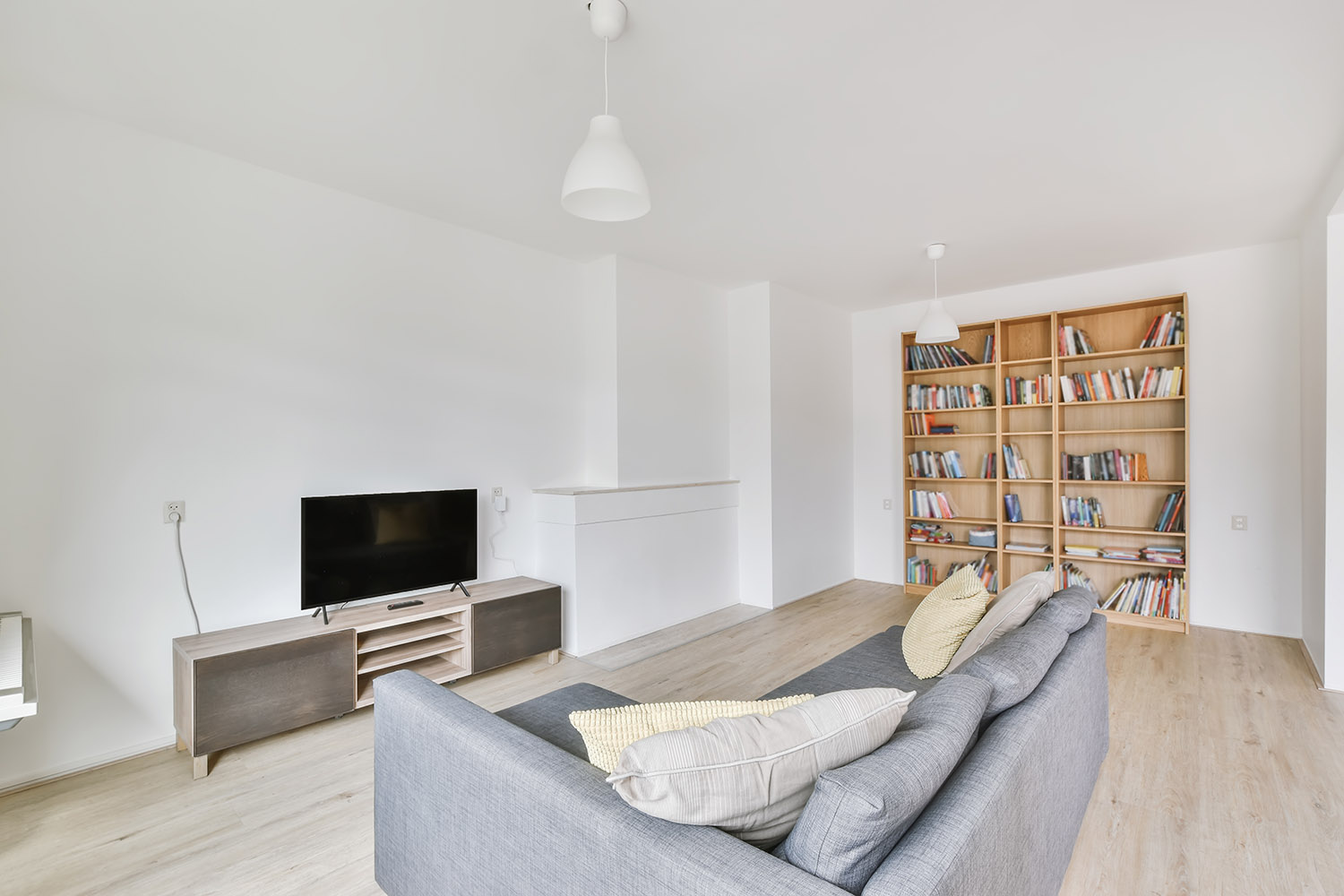 فكري في إنشاء مكتبة حائطية فهي تساعد في الاستفادة من المساحات كما أنها تخفي الكثير من الفوضى المنزلية . بالإضافة إلى ذلك , انشاءها سهل و سريع للغاية , ستحتاجين فقط إلى مجلدات ورقية و صناديق لعمل حواجز للفصل بين الكتب .