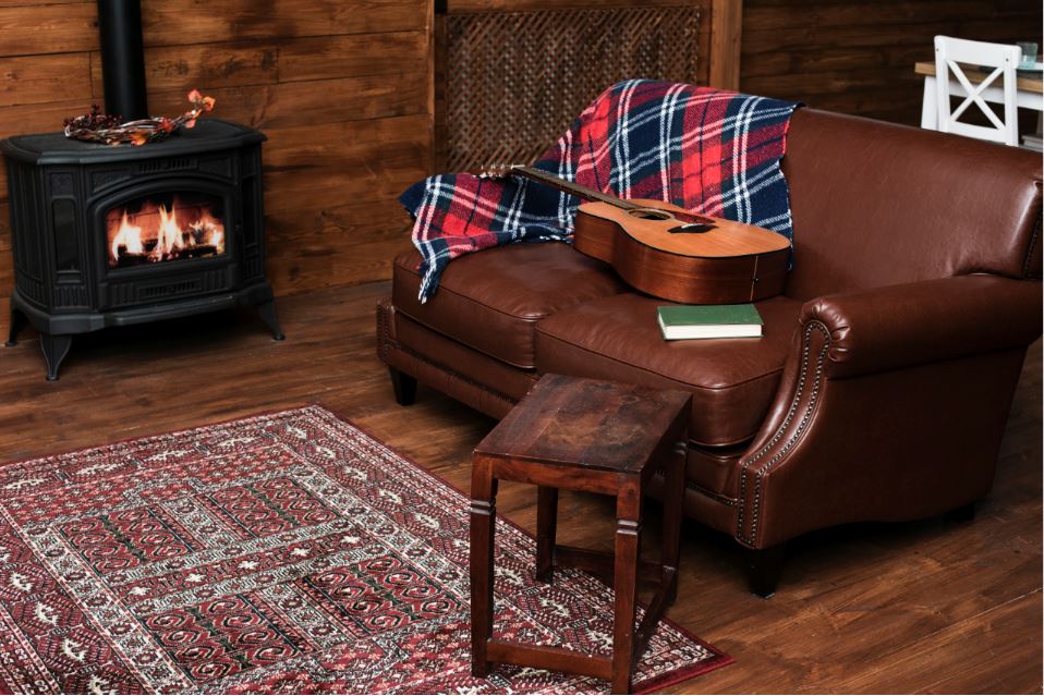 Un tapis épais et un fauteuil bas , vous permettent d’avoir un coin de lecture intime à coté de la cheminée pour lire tout en profitant de la chaleur de la cheminée pendant l’hiver si bien sure votre cheminée est encore fonctionnelle.