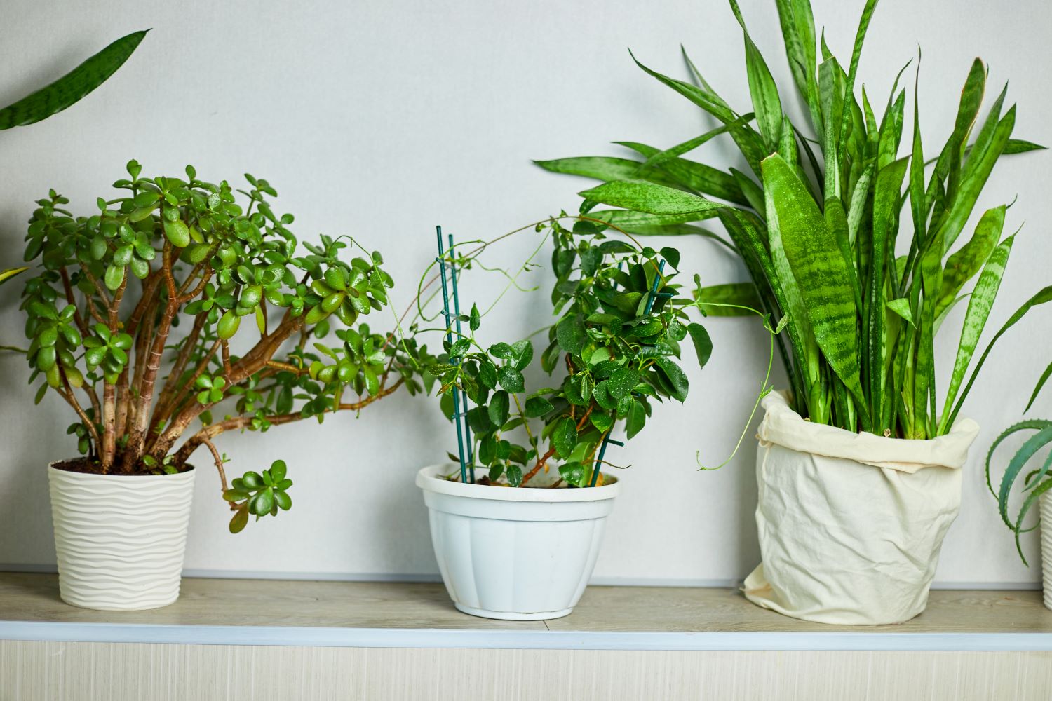 Grands pots au sol, petites plantes sur les meubles ou les rebords de fenêtre. Cela crée une composition harmonieuse et dynamique. Les cache-pots en osier, céramique ou métal ajoutent une touche déco végétale supplémentaire.