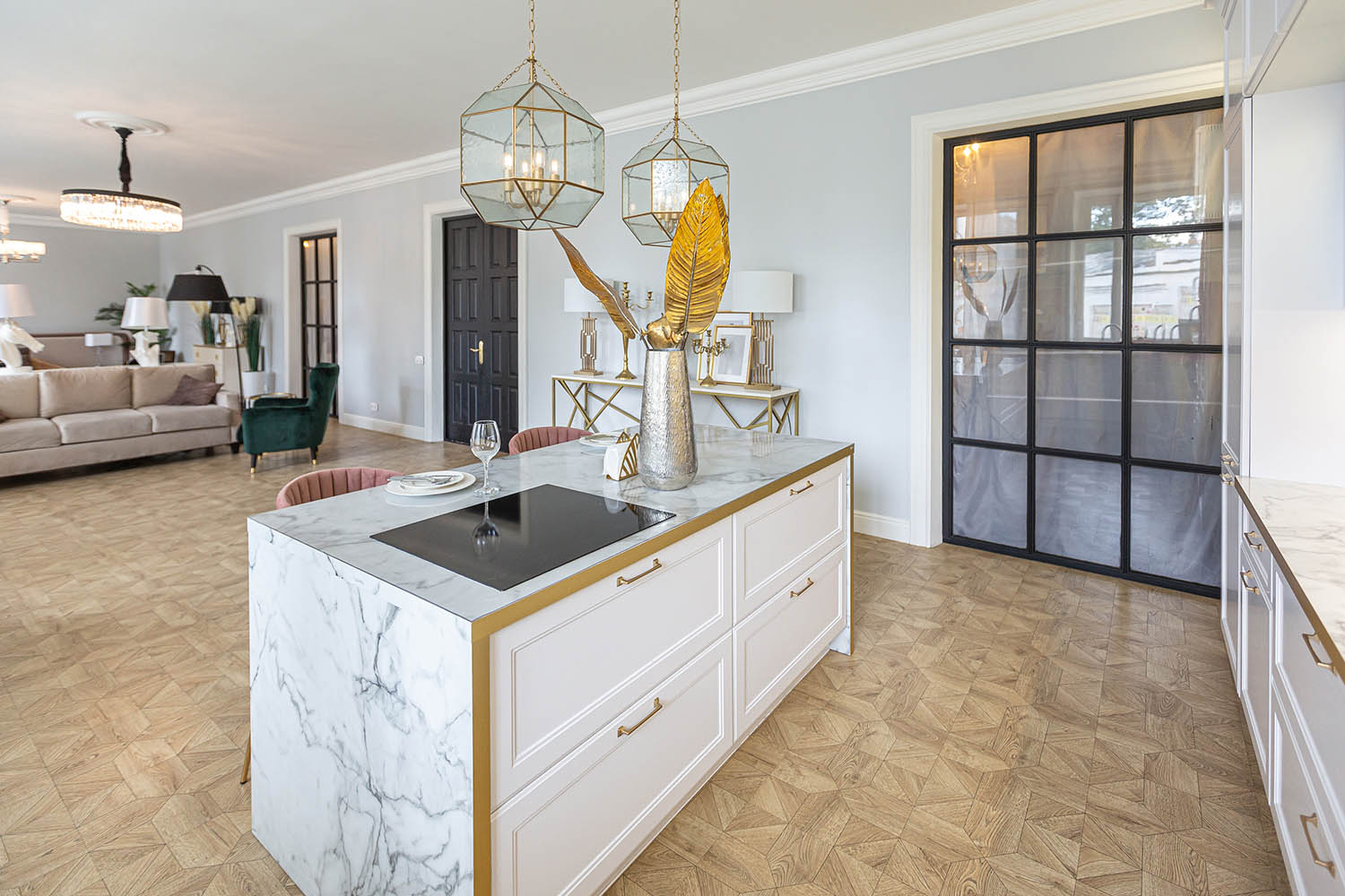 Utilisez des éléments de design tels que des étagères ouvertes pour exposer des objets décoratifs et des ustensiles de cuisine élégants, établissant ainsi une connexion visuelle tout en maximisant l’espace de rangement.